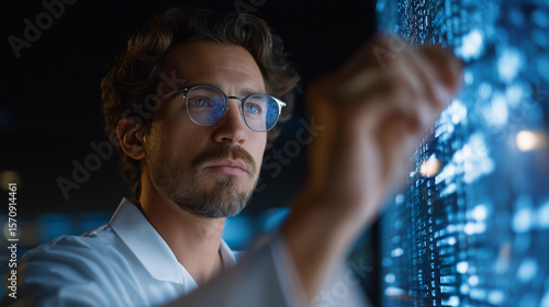 Crypto Analyst Working on Binary Code in a Futuristic Lab