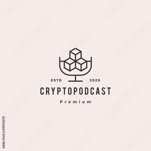 crypto podcast logo hipster retro vintage icon for blockchain cryptocurrency blog video vlog review tutorial channel