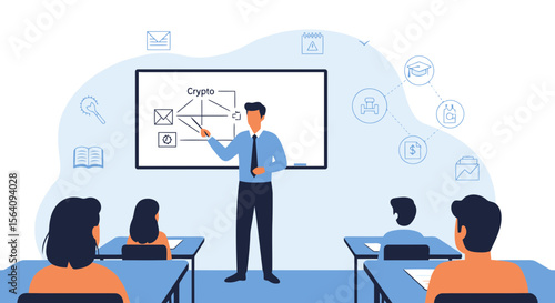 Cryptocurrency Education Instructor Teaching Digital Assets to Students in Classroom