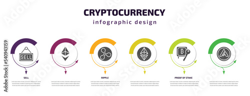 cryptocurrency infographic template with icons and 6 step or option. cryptocurrency icons such as sell, , ripple, proof of stake, vector. can be used for banner, info graph, web,