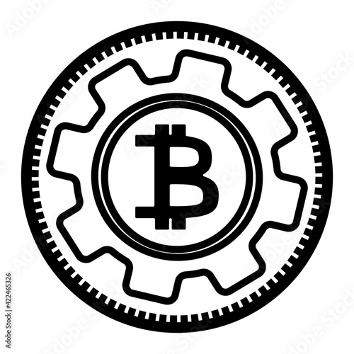 Cryptocurrency trade turnover concept, bitcoin sign inside gear shape, vector icon.