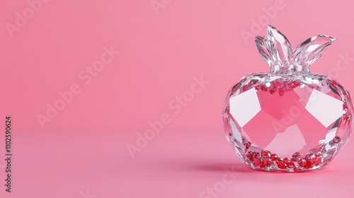 Crystal apple on pink background with red gems inside