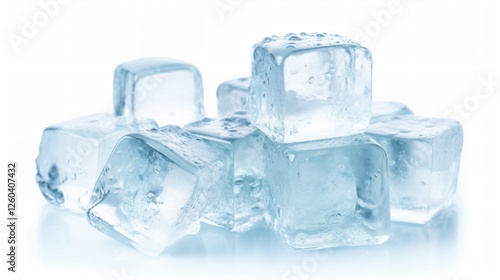 Crystal Clear Ice Cubes on White Background