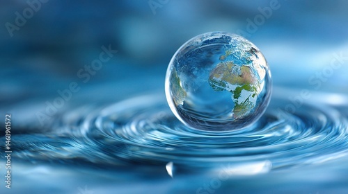 Crystal Globe of Earth Floating in Clear Water Drop