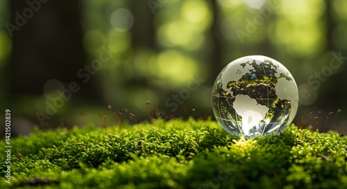 Crystal Globe on Moss A Symbol of Environmental Conservation and Global Sustainability