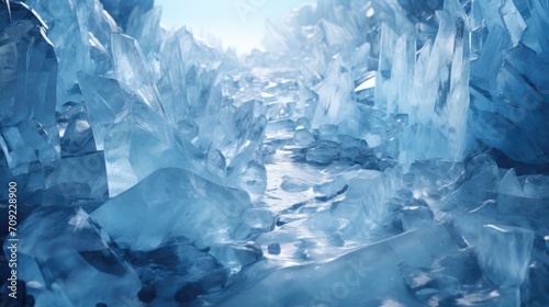 Crystal Ice Cave: Icy Blue and White Crystal Cave Patterns with Sharp, Jagged Crystal Formations and Blurry Ice Patches