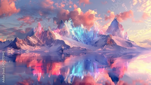 Crystal Mountains - Design a scene with abstract crystal mountains and reflective surfaces