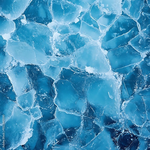 Crystal-clear blue ice exhibiting unique crack patterns across the surface.