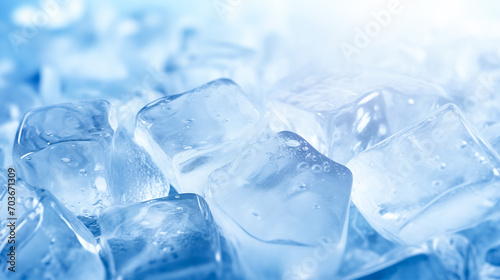 Crystal-clear ice cubes with refreshing condensation, perfect for cooling summer drinks or cold beverage themes. AI Generative