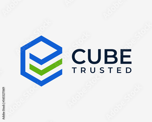 Cube Box Package Hexagon Checkmark Tick Correct Checklist Checkbox Line Geometric Vector Logo Design