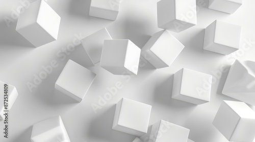 cubes floating seperately, white color, matte surface, studio lightning, white background
