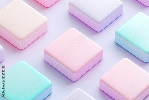 Cubes in various pastel shades overlap in a dynamic arrangement, showcasing a blend of colors that evoke a sense of tranquility and sophistication