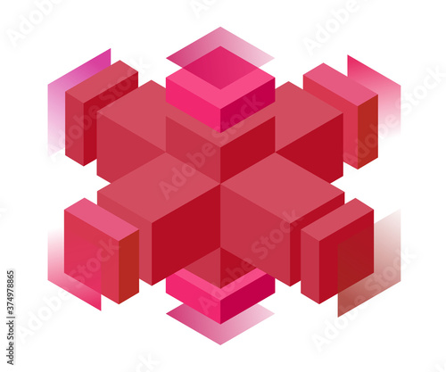 Cubic isometric logo. Magic crystal of wisdom of management. Three-dimensional colorful cube in the structure of space