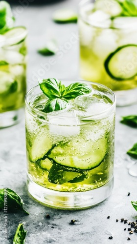 Cucumber Basil Cocktail: Refreshing cocktail featuring fresh cucumber and basil, perfect for summer refreshment.
