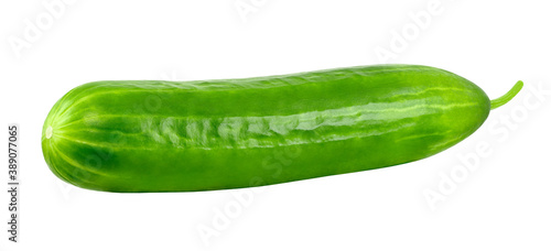 Cucumber one whole green isolated on a white background with clipping path. Full depth of field.