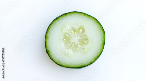 Cucumber with its vibrant green color, freshly sliced and isolated on a pure white background, captured from above.