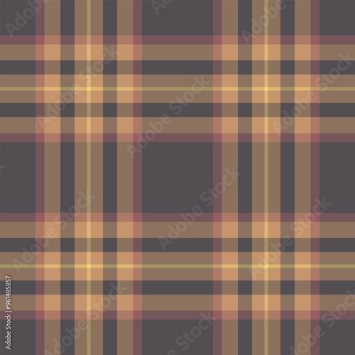 Cultural tartan pattern texture, asymmetric fabric textile check. Sparse plaid vector seamless background in orange and grey colors.
