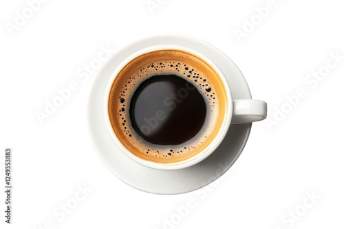 Cup of coffee with saucer isolated on transparent background. PNG. Top view