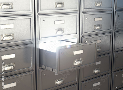 cupboard with open box for storage on a white background. Light from the inside. 3d illustration