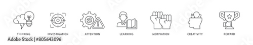 Curiosity icon packs for your design digital and printing of thinking, investigation, attention, learning, motivation, creativity, reward icon live stroke and easy to edit