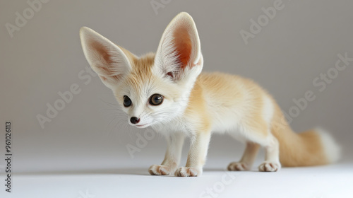Curious Baby Fennec Fox Exploring White Surface with Sandy Fur and Large Ears in Desert Adventure of Wonder