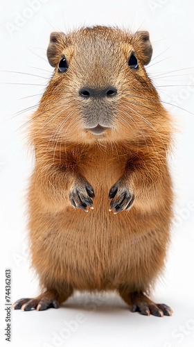 Curious Capybara, A fluffy baby capybara cub with bright eyes and soft fur, background image, generative AI