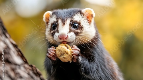 Curious Furry Critter Peeking from Tree Branch and Eating