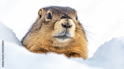 Curious Marmot Emerging from Snowy Landscape in Winter