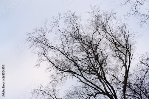 Curly branches of tree against winter sky, suitable as pattern or background. Slovakia