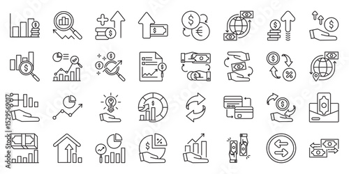 Currency Trading & Profit Strategy set of web icons in line style. currency trading, forex exchange, foreign exchange and currency market. Vector illustration