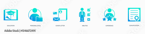 Curriculum Vitae banner web icon vector illustration concept with icon of education, personal data, cover letter, abilities, experience and qualification