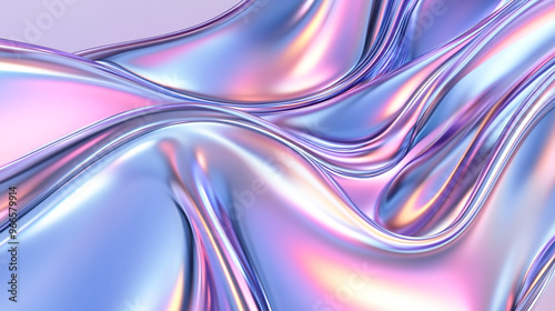 Curved abstract metallic futuristic 3d fluid holographic ilustration chrome background