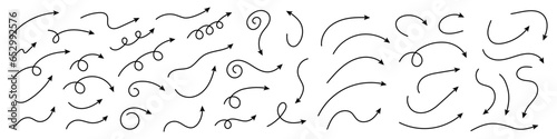 Curved arrows. Set of vector hand drawn zigzag arrows. Collection of pointers. Vector illustration.