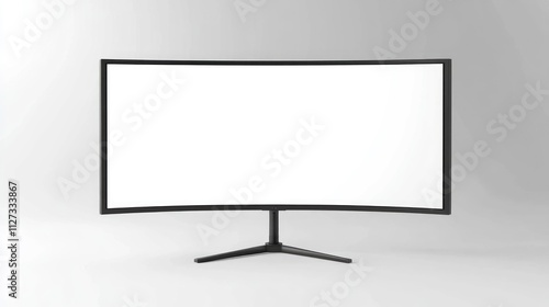 Curved monitor with blank white screen on empty gradient background for mockup and design presentations