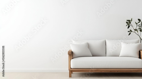 Customcrafted wooden sofa with builtin storage, minimalist yet functional luxury, warm natural tones