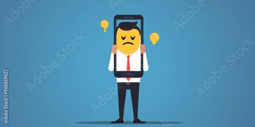 Customer Experience dissatisfied Concept, Unhappy Businessman Client with Sadness Emotion Face on smartphone screen, Bad review, bad service dislike bad quality, low rati
