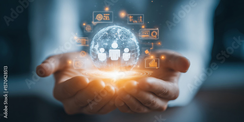 Customer Relationship Management, Businessman use tablet with global structure customer network technology, Data exchanges development. customer service, social media. digital marketing online.