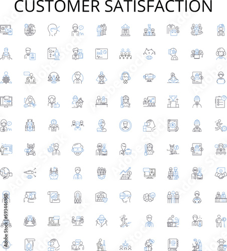 Customer satisfaction outline icons collection. Satisfaction, Contentment, Gratification, Delight, Joy, Ease, Reliability vector illustration set. Comfort, Happiness, Quality linear signs