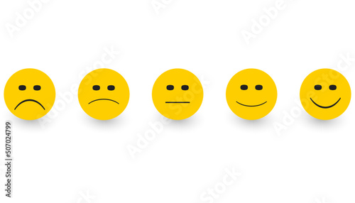 Customer service evaluation and satisfaction survey. Negative and positive feedback. Rating system. perfect, good, normal, bad, terrible facial expressions.