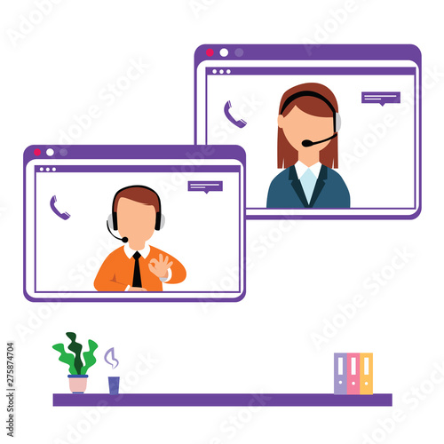 Customer Service Interactive , Call Center for online Shopping and Business Concept Vector Template Design Illustration