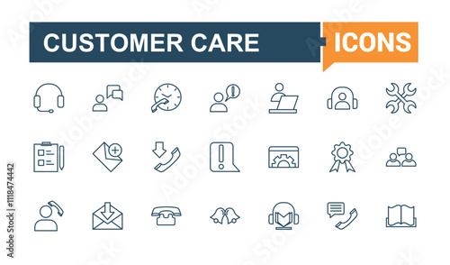 Customer Service line icon collections. Includes icons for outline, wirele, chat, support, question, us, time, thumb. Thin linear style icons.
