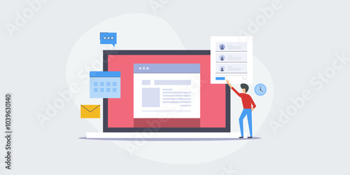 Customer service software, business people using CRM technology, digital marketing and client database, sales operation management conceptual vector illustration.