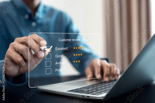 Customer services best excellent business rating experience. Satisfaction survey concept. user give rating to service experience on online application .