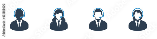 Customer Support Agent Icon Set. Editable Flat Vector Illustration.