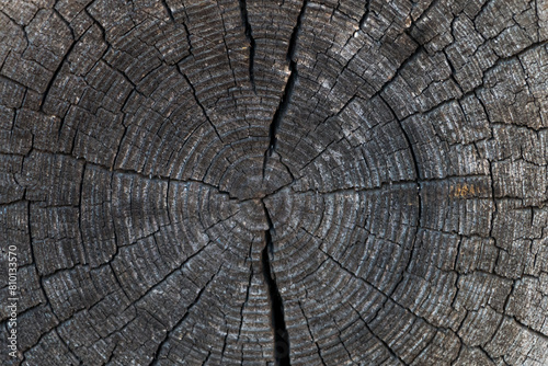 cut of an old cracked log. natural wooden background. Tree rings on a log.