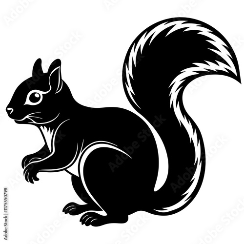 Cute Line Art Squirrel Silhouette Black Vector Illustration