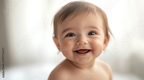 Cute and adorable baby boy sitting and smiling happily