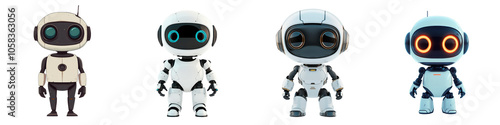Cute and Friendly Robotic in Various Unique Designs and Styles on a Plain White Background Representing Advancements in Intelligence and Automation Technology
