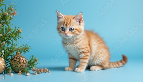 cute and funny kitten posing in a photography studio, in a photo with a blue gradient background