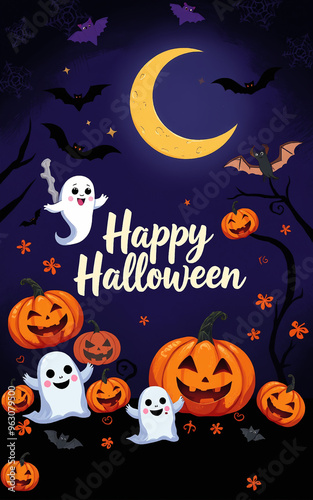 cute and gorgeous halloween card poster design illustration cartoon